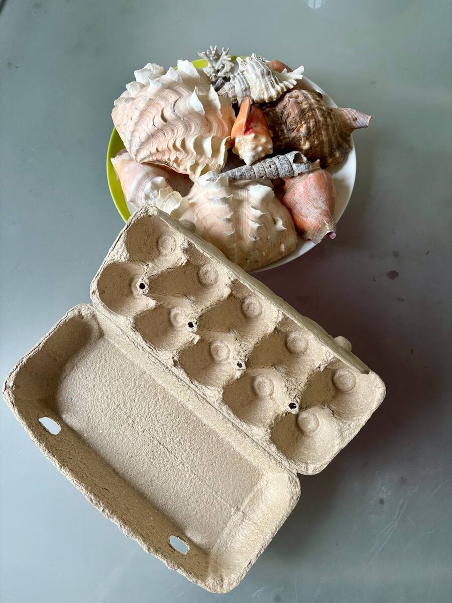 - Основной материал: Картонные лотки для яиц (лучше немного фактурные).