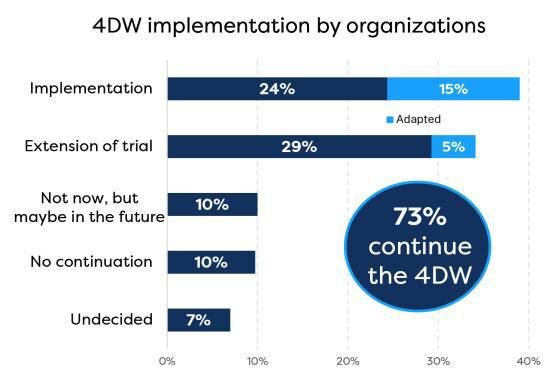 Четырёхдневка работает лучше, чем пятидневка📊 В Германии проводился эксперимент: 45 компаний перевели сотрудников на 4-дневную рабочую неделю с сохранением зарплаты. Результат — эффективность не упала, а выросла📈 Люди стали спокойнее, счастливее, уровень стресса снизился, а новых сотрудников теперь находят в разы быстрее. Более 70% компаний решили оставить такой график даже после эксперимента. 🎙Вывод прост: люди работают эффективнее, если хорошо отдохнули. 💾Если ты сегодня работаешь — сходи, налей себе чаю и покажи начальнику этот пост. Может, и у вас появится шанс на 4-дневку 😉 #Бизнес@maxchudov #Продуктивность@maxchudov