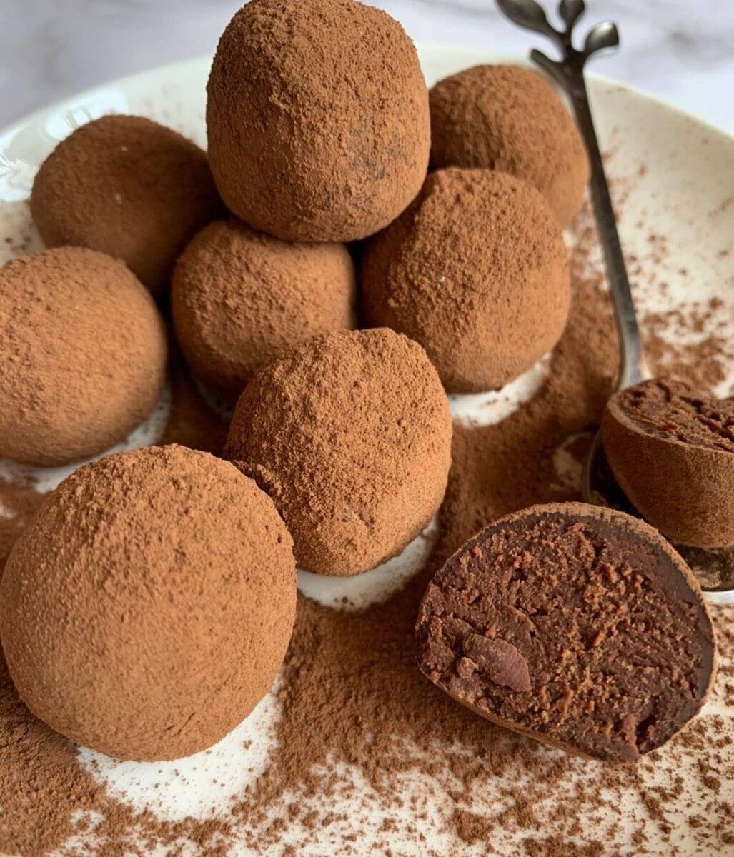 Ингредиенты: ▫️сливки 33-35% — 60 мл ▫️шоколад — 100 г ▫️сливочное масло — 10 г ▫️какао-порошок — 3 ст. л. ▫️алкоголь крепкий — 1 ст. л. Способ приготовления: 1. Сливки подогреваем до 70–80°C, но не доводим до кипения. Заливаем горячими сливками шоколад и хорошо перемешиваем до однородности. 2. Добавляем мягкое сливочное масло и крепкий алкоголь (можно и без него, он для аромата). Пробиваем погружным блендером. 3. Накрываем пищевой пленкой в контакт и убираем в холодильник на 5–6 часов. 4. Перекладываем массу в пищевую пленку и скатываем в колбаску. 5. Нарезаем на равные кусочки и катаем ровные шарики. Каждый обваливаем в какао-порошке. 6. Убираем в холодильник на 1 час. Нежные конфеты можно подавать к столу. Они просто таят во рту! Приятного аппетита!