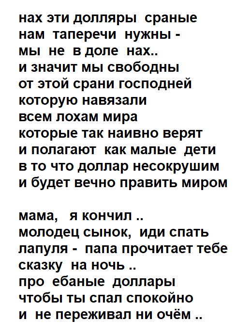 которые могли быть намного сильнее и конкурентно способнее если бы избавились наконец от этой валютной зависимости как нарики ебаные