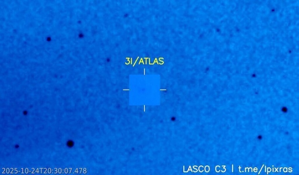 🔭 Межзвёздный объект 3I/ATLAS столкнулся с мощным выбросом солнечной плазмы! На уникальных снимках коронографа LASCO/C3, опубликованных