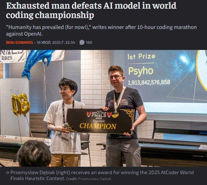 π¨βπ» ΠΠΎΠ»ΡΡΠΊΠΈΠΉ ΠΏΡΠΎΠ³ΡΠ°ΠΌΠΌΠΈΡΡ ΡΡΠΌΠ΅Π» ΠΎΠ±ΡΠ³ΡΠ°ΡΡ Π½Π΅ΠΉΡΠΎΡΠ΅ΡΡ Π² 10-ΡΠ°ΡΠΎΠ²ΠΎΠΌ ΠΌΠ°ΡΠ°ΡΠΎΠ½Π΅ ΠΏΠΎ ΡΠ²ΡΠΈΡΡΠΈΡΠ΅ΡΠΊΠΎΠΌΡ ΠΏΡΠΎΠ³ΡΠ°ΠΌΠΌΠΈΡΠΎΠ²Π°Π½ΠΈΡ Π‘ΠΎΡΠ΅Π²Π½ΠΎΠ²Π°Π½ΠΈΠ΅ ΡΡΠ΅Π±ΠΎΠ²Π°Π»ΠΎ ΠΊΡΠ΅Π°ΡΠΈΠ²Π½ΠΎΡΡΠΈ, ΠΈΠΌΠ΅Π½Π½ΠΎ ΡΡΠΎ ΠΈ ΡΡΠ°Π»ΠΎ ΡΠ»Π°Π±ΡΠΌ ΠΌΠ΅ΡΡΠΎΠΌ ΠΠ, Π·Π°ΡΠ²ΠΈΠ» ΠΏΡΠΎΠ³ΡΠ°ΠΌΠΌΠΈΡΡ ΠΏΡΠΈΠ·Π½Π°Π²ΡΠΈΡΡ, ΡΡΠΎ ΡΠ°ΠΌ Π±ΡΠ» Π½Π° Π³ΡΠ°Π½ΠΈ. Π‘Π»ΡΡΠ°ΠΉ Π½Π°Π³Π»ΡΠ΄Π½ΠΎ ΠΏΠΎΠΊΠ°Π·Π°Π», ΡΡΠΎ ΠΏΠΎΠΊΠ° ΡΡΠΎ Π² Π·Π°Π΄Π°ΡΠ°Ρ