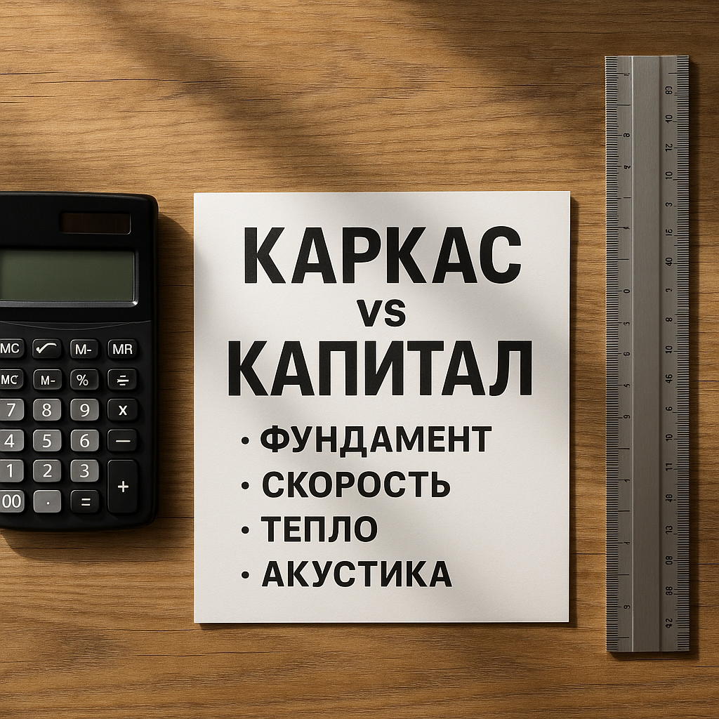 Коротко: каркас даёт скорость и меньшую нагрузку на фундамент, «капитал» (газоблок/кирпич) — инерцию и тишину. Итоговая смета определяется не ценой кубометра, а формой дома, узлами и дисциплиной монтажа. Каркас собирается быстрее: меньше выездов техники, аренды лесов, «мобилизаций». Смета тише уже на этапе коробки.