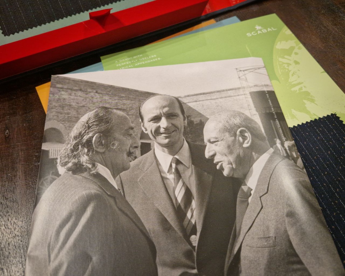 В 1971 году легендарный художник-сюрреалист Сальвадор Дали получил заказ от компании Scabal на создание серии из 12 картин, в которых он представил своё видение будущего мужской одежды в 2000 году. Пятьдесят пять лет спустя произведения Дали стали источником вдохновения для новой коллекции тканей Scabal – Vision. Команда текстильных дизайнеров Scabal создала 12 тканей, каждая из которых напрямую вдохновлена одной из картин Дали. Опираясь на яркие цвета, замысловатые детали и формы в произведениях художника, коллекция Vision воплощает сюрреалистическое видение Дали и предлагает свежий взгляд на дизайн классической мужской одежды, объединяя искусство и моду. Каждая ткань коллекции соткана ограниченным метражом без планов восполнения коллекции на собственной ткацкой фабрике Scabal в Йоркшире из шерсти с добавлением кашемира. Оформление каталога тканей, выполненного в форме подарочной коробки, навеяно красочными бабочками, присутствующими на картинах Дали. Познакомиться с коллекцией тканей