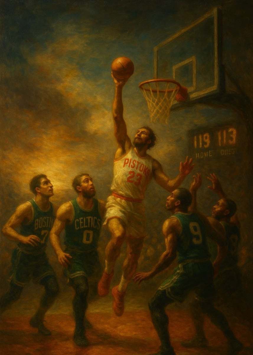 Бостон в этом сезоне приезжает в Детройт в ранге андердога, однако в первой четверти Селтикс удавалось отрываться и на 17 очков. Но все же превосходство Пистонс в классе сказалось - победа "поршней" 119:113, несмотря на то, что "кельтам" и удалось затащить поединок в клатч. В стиле Айвазовского