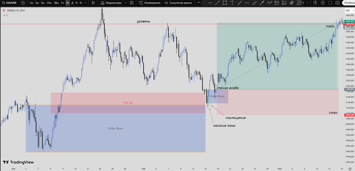Открываешь десяток сделок в день, а в итоге оказываешься если не в минусе, то где-то рядом? Рынок шумит, графики мелькают, а толку — кот наплакал. Многие так и торгуют — много суеты, мало результата. Вся проблема в том, что мы часто путаем активность с эффективностью. Сегодня поговорим о подходе, который учит не бегать за каждой копейкой, а терпеливо ждать свой единственный, но по-настоящему качественный шанс. Что такое FVG и OB, или где рынок оставляет свои следы Давайте без сложных определений. Нам нужно находить на графике два типа «следов», которые оставляют крупные игроки. FVG (Fair Value Gap) — ценовой разрыв. Он появляется после резкого движения цены. Смотрите на график: когда три свечи подряд не перекрывают область друг друга, между ними образуется «дыра». Цена часто возвращается, чтобы её заполнить. OB (Order Block) — блок ордеров. Это ценовая область, от которой рынок ранее резко развернулся. Здесь крупные игроки выставили много ордеров, и эта зона теперь является сильным уро