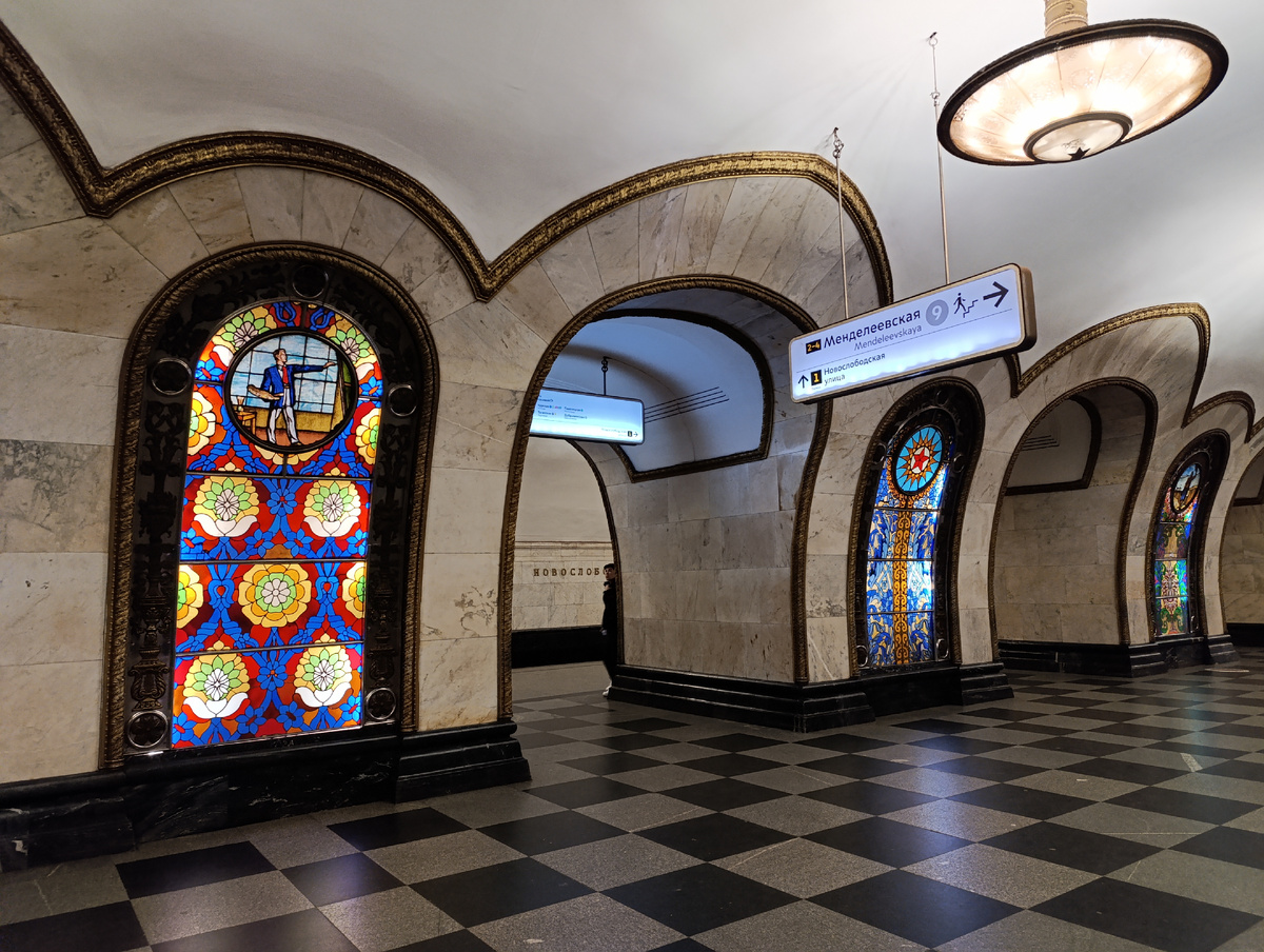 Вышла на станции метро Новослободская. Какая, все же, она красивая! Пожалуй, красивее ее и нет. Эти мозаичные арки - просто чудо какое-то!