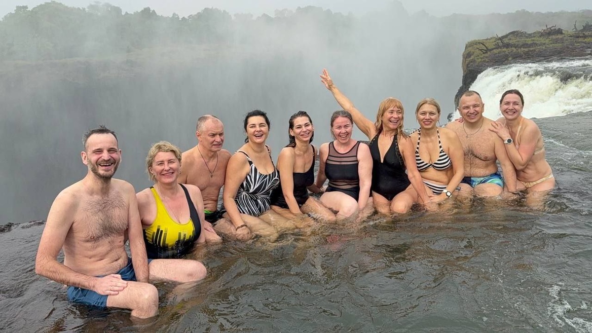 Если вы боитесь высоты, то вам, конечно, не сюда. Экскурсия к "адскому бассейну" в Замбию - это способ немного пощекотать себе нервы и... ноги. Итак, вас ждёт аттракцион по прохождению границы, катание на лодке, купание в реке Замбези и бонусом - пилинг! Последнее многим мешает сделать хороший снимок даже больше, чем страх высоты. Когда тебя в прямом смысле покусывают за ногу или попу - сосредоточиться на красивом лице сложновато. Но возможность заглянуть за свал водопада - это фишка. И вполне себе безопасно. А ещё - очень вкусный завтрак с красивыми тарелками, хорошим кофе и сервисом. В общем, интересное развлечение. Многим понравилось даже больше, чем полёт над водопадом на вертолете. Об этом опыте может быть Кира напишет... Она летала. Наш тур Замбия -Зимбабве-Ботсвана-ЮАР