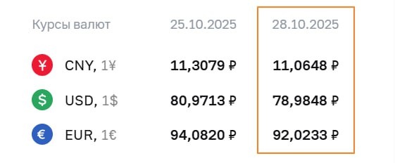 🔸ЦБ РФ назначил курсы валют на 28 октября