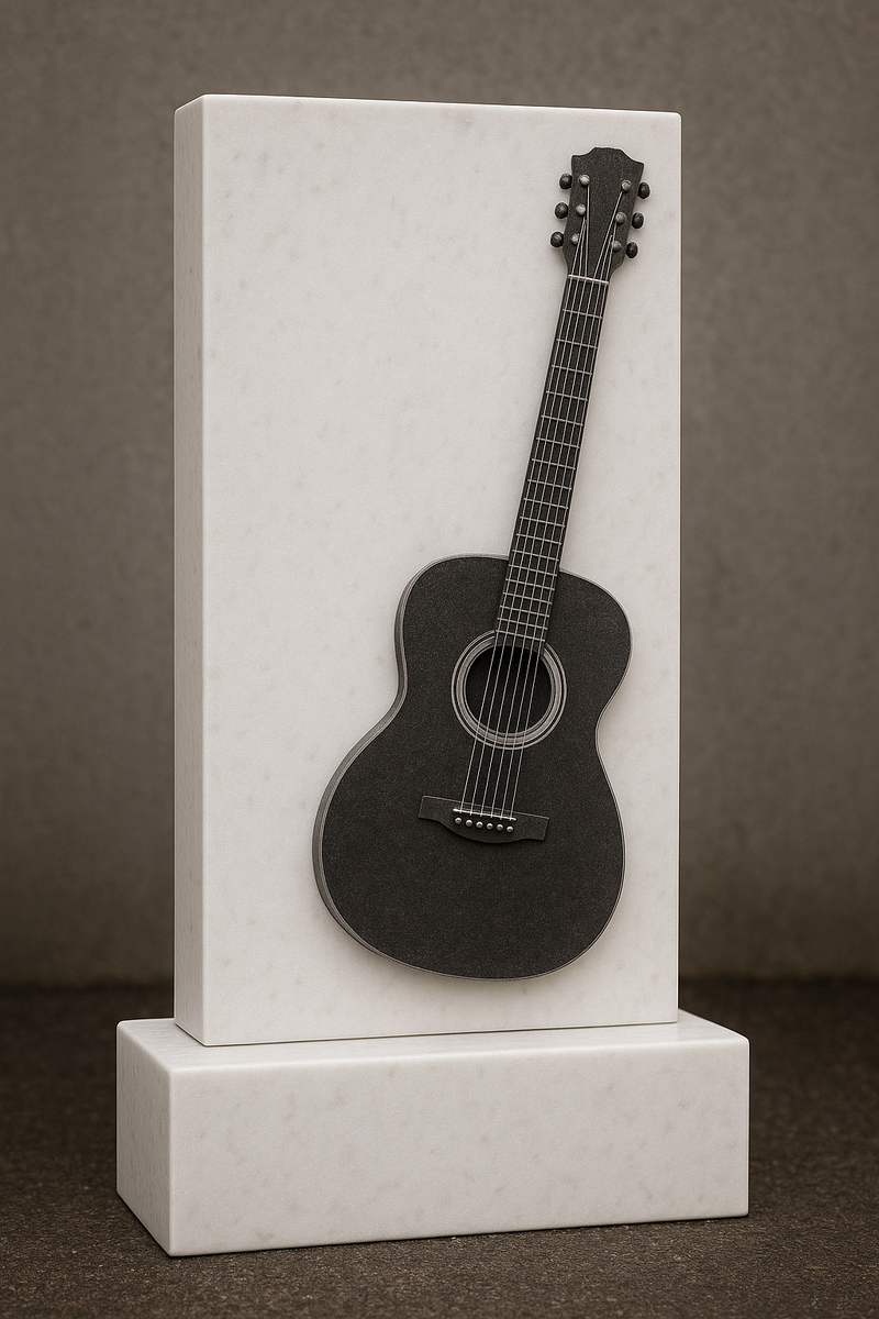 Вечная память талантливому музыканту: памятник с символической гитарой из благородного гранита