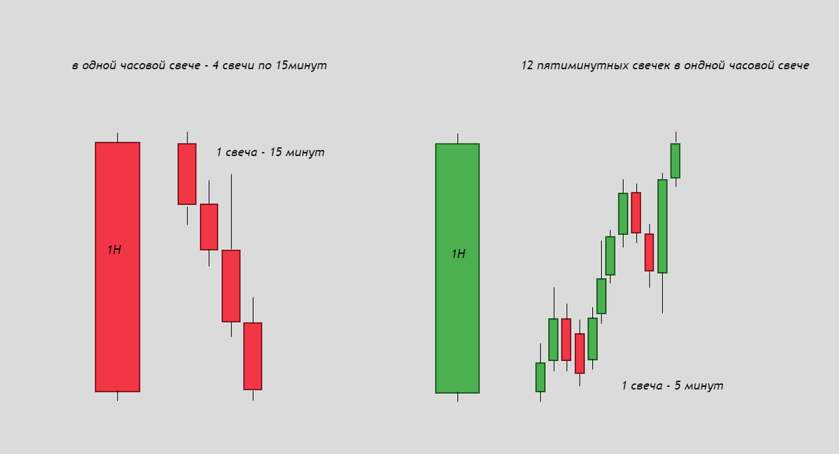 Есть один вопрос, который разделяет тех, кто постоянно гадает куда пойдет рынок, и тех, кто торгует с уверенностью: «А что же на самом деле происходит с рынком?». Пока большинство трейдеров тонет в шуме и мельтешении пятиминуток, умные игроки принимают решения, глядя на спокойные и четкие картины старших таймфреймов. Это не просто еще один инструмент анализа — это фундаментальный сдвиг в восприятии, который превращает хаос в порядок. Давай разберемся, как это работает на практике. Что за «старшие таймфреймы» и зачем они нужны Младший таймфрейм (например, M5 или M15) может использоваться как точка входа, но никак для анализа. Higher Time Frame (HTF) — старший таймфрейм, самый лучший и правильный выбор для анализа. Проще говоря, HTF — это график, где одна свеча формируется дольше по времени. Если ты обычно торгуешь на 15-минутках (M15), то твоим HTF будет часовой (H1) или четырехчасовой (H4) график. Для тех, кто работает на H4, старшим таймфреймом будет дневной (D1). Важная мысль: Старши