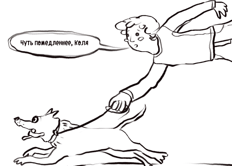 Важно: мы ничего не говорим собаке, не просим ее не тянуть, не подзываем к себе, не дергаем поводок и не ругаемся. В этот момент можно даже вообще не смотреть на нее, а ориентироваться только на ощущения в наших руках. Как только натяжение ослабевает (не важно, что при этом сделала собака), мы сразу же продолжаем движение и хвалим ее, поощряем.