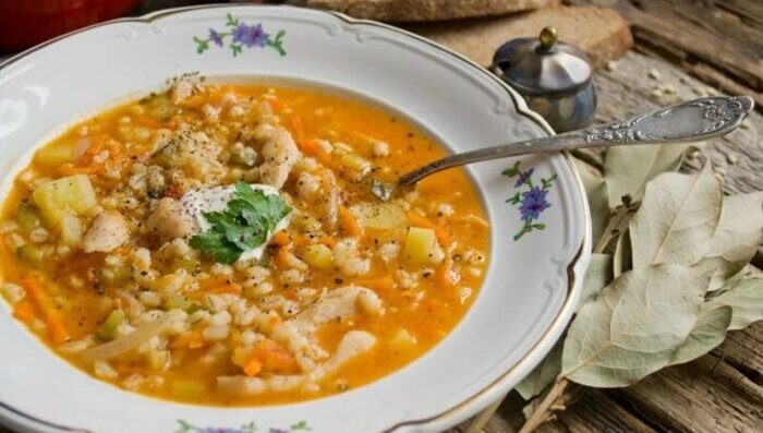 - Если перловка отваривается долго — можно заранее её промыть, залить кипятком на 15–20 минут и слить жидкость перед добавлением в бульон.