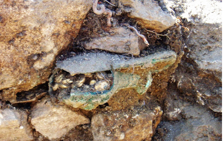 20 августа 2003 года на участке «И» города Мирмекий была обнаружена неожиданная находка. В то время как камни из остатков стены № 360 были удалены, член экспедиции А. Ковригин обнаружил клад монет, сделанных из электрума. Клад находился в маленьком бронзовом кувшине высотой 21,5 см. Пока он залегал в почве бронза сильно треснула и отслаивалась. Судя по внешним признакам, в нижней части ручки был небольшой сильно коррозированный рельеф с изображением того, что, скорее всего, было медузой Горгоной или львом.