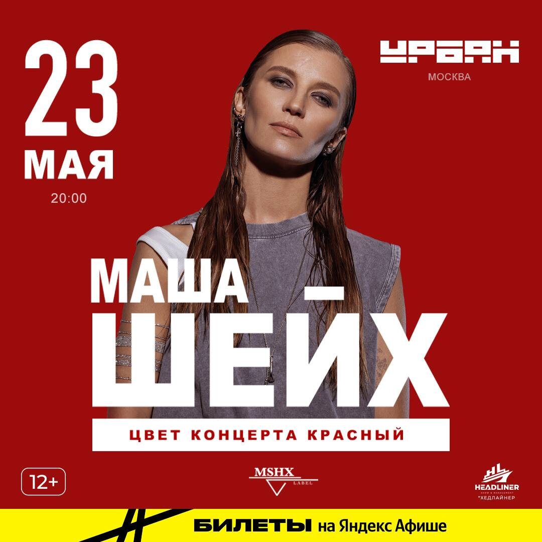 Москва ! Встречаемся 23 мая ♥️ Обращаю ваше внимание, что теперь у каждого большого концерта будет свой цвет концерта 🤩 Готовим красное и хорошее настроение ⚡️ https://www.mashasheix.ru/афиша/
