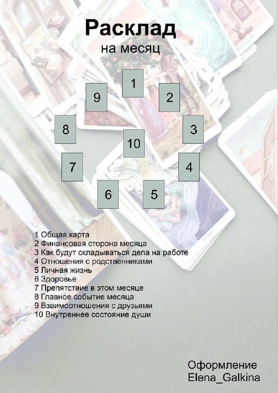 💡 Подборка раскладов на месяц Выгоды от раскладов: ➡️ Вы смените тревогу на действие. Вы будете знать о потенциальных вызовах заранее и встретите их во всеоружии. ➡️ Вы начнете видеть возможности, которые раньше упускали из виду. Карты подсветят перспективные направления. ➡️ Вы примете важные решения быстрее и легче, потому что у вас будет четкое понимание энергетического фона ситуации. ➡️ Вы почувствуете, что контролируете свою жизнь, а не она вас. Это чувство уверенности бесценно. Почему выбирают именно меня? 🃏 Не гадаю, а анализирую. Моя задача — не напугать «плохими» картами, а дать вам практические советы и инструменты для прохождения любых этапов. Я помогаю перевести язык символов в конкретные жизненные стратегии. 🃏 Без воды и шаблонов. Каждый расклад — это живой, индивидуальный диалог с колодой именно о вашей ситуации. Я не отправляю шаблонные PDF-файлы. 🃏 Безопасное пространство и полная конфиденциальность. Ваши запросы и результаты остаются строго между нами. Вы м
