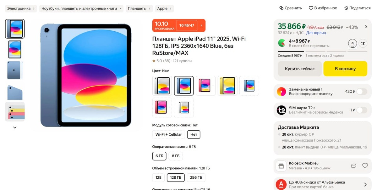 ‼️АКЦИЯ Планшет Apple iPad 11" 2025, Wi-Fi 128ГБ, IPS 2360x1640 Blue, без RuStore/MAX