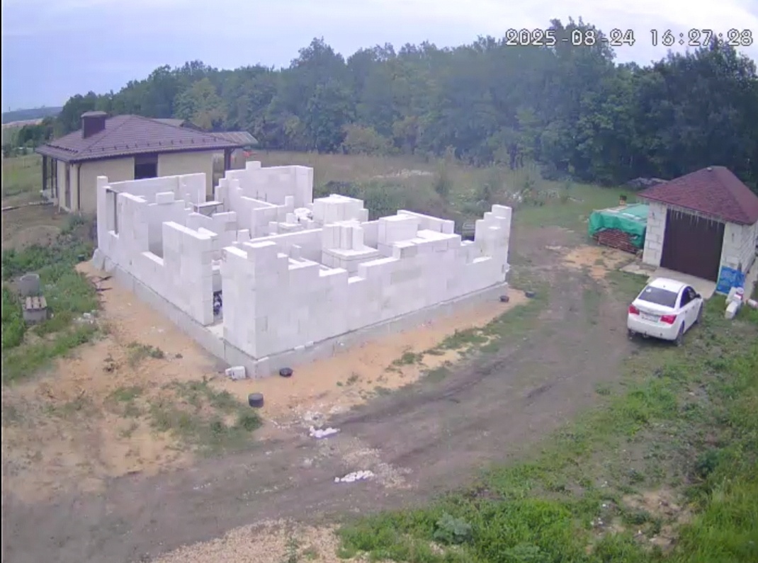 Доброго времени суток, уважаемые подписчики и гости нашего канала. В предыдущих статьях вы видели наши продвижения в стройке, кто не подписан - подписывайтесь на канал и поддержите наши старания. Первый ряд был готов, набрал прочность и стройка неизбежно продолжилась. Начали возводить стены коробки дома, в соответствии с чертежом дома. Благо все размеры совпали со всеми нашими "хотелками" и чертежами. Время на все чертежи и добросовестный подход к фундаменту и первому ряду не потеряно зря. Не забывайте про особое внимание к этим этапам стройки при возведении своего очага. Времени и возможности особо не было что-то снимать, выкладывать поэтапно. Основной уклон был сделан на возведение коробки дома, так как тёплый период строительного сезона не резиновый. Некоторые снимки я приведу ниже. Сразу поясню, что блоки ложили на клей-пену для газобетонных блоков. Это очень крепко, это очень удобно, это очень чисто. В сравнения клея для блоков и клей-пены вдаваться не буду. На просторах "всеми
