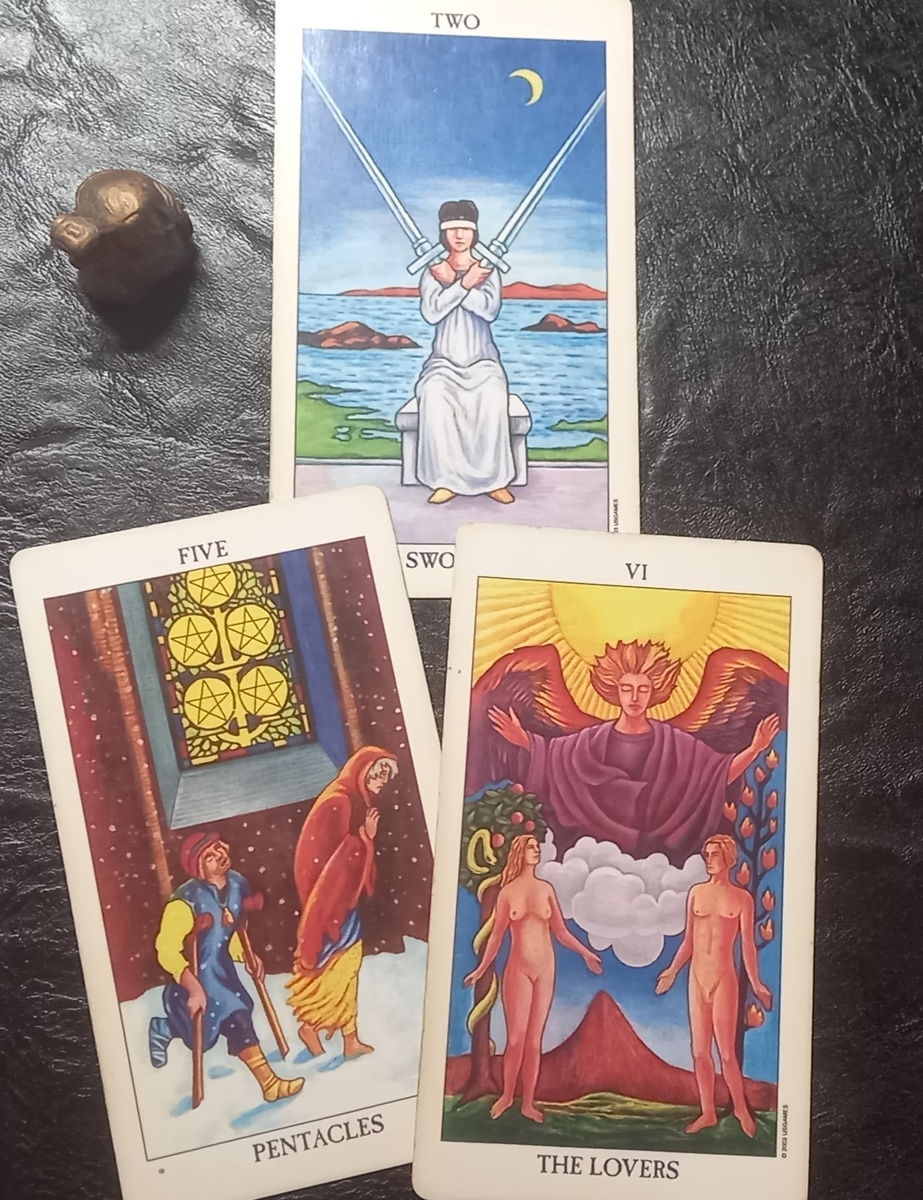 Влюбленные про выбор, причем самостоятельный, определенность наконец. Если свести с Двойкой мечей, то получится, что тебе самой надо определиться, что в этом вопросе слушать - голову или интуицию. Никто за тебя не решит. А может быть есть вариант соединить подсказки головы и чуйки, найти точку золотой середины, договориться. Никто не лишает тебя права наконец попробовать, не получится - тоже опыт. И не стоит желать потраченного, любой опыт в копилку.