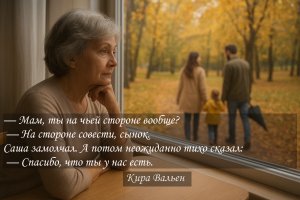 — Не держи на него зла. Со временем он и сам поймет, что натворил. С того дня она стала часто приходить «ненадолго», но эти «ненадолго» превращались в вечера с блинами, уроками для Кати и долгими разговорами на кухне. Когда Саша женился снова, Мария Ивановна только вздохнула.