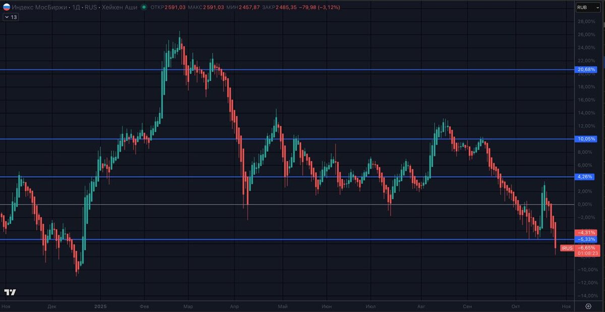 Всем привет, на связи Эван. Выше вы видите график индекса Мосбиржи. Падение серьёзное. Он пробил уровень 2500 и... Что же будет дальше?! Куда ни посмотри — ситуация интересная. На нашем рынке, на крипте, на международном, в золоте. Одни не понимают, где покупать, другие — где продавать, третьи — что вообще делать и как начать. Раньше на эфире (https://go.multievan.ru/116) я показывал свои заготовленные графики, уровни и пояснял свою позицию, стратегию. В этот раз я сделаю по-другому. У нас в Клубе Мультипликатор есть замечательная практика, которая себя зарекомендовала — разбирать активы, цели, идеи в прямом эфире. Когда я в прямом эфире открываю графики, анализирую их и поясняю, как бы я действовал с позицией, где бы заходил или выходил. На этом эфире я проведу именно такой продвинутый анализ. Ранее такого в открытом доступе я не делал. Интересно будет и совсем новичкам, и старожилам рынка, которые сейчас смотрят на падение IMOEX, ИИ-бум, ОФЗ, золото, биткоин, ждут альтсезона и занима