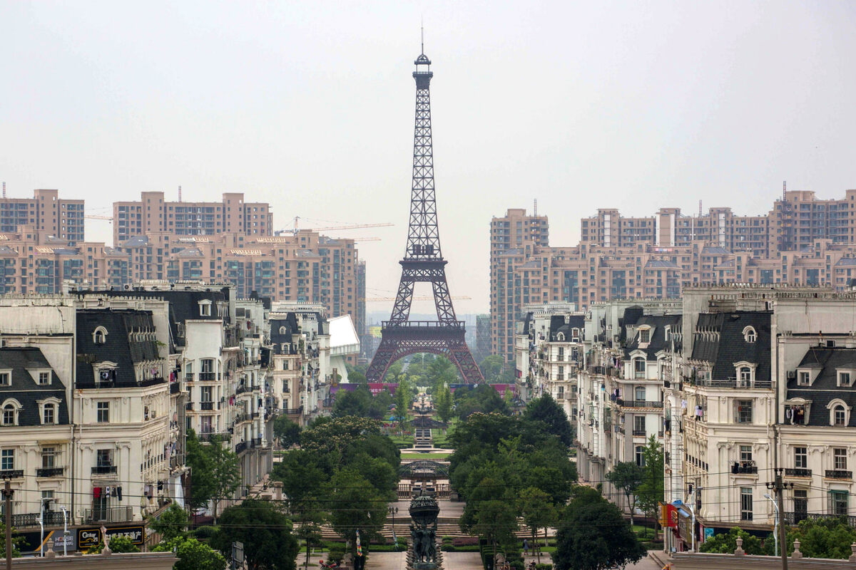Этот город-копия стоит в провинции Чжэцзян, в часе езды от Ханчжоу. Здесь есть всё: Эйфелева башня (108 метров — почти треть оригинала), фонтаны, французские статуи, «Елисейские поля» и даже микро-Версаль. Только вот местами — без людей. Когда город открыли в 2007-м, он задумывался как элитный жилой район для 100 тысяч человек. На деле заселилось от силы пару тысяч. Поначалу Tianducheng стал символом того, как Китай умеет строить всё — кроме атмосферы.
