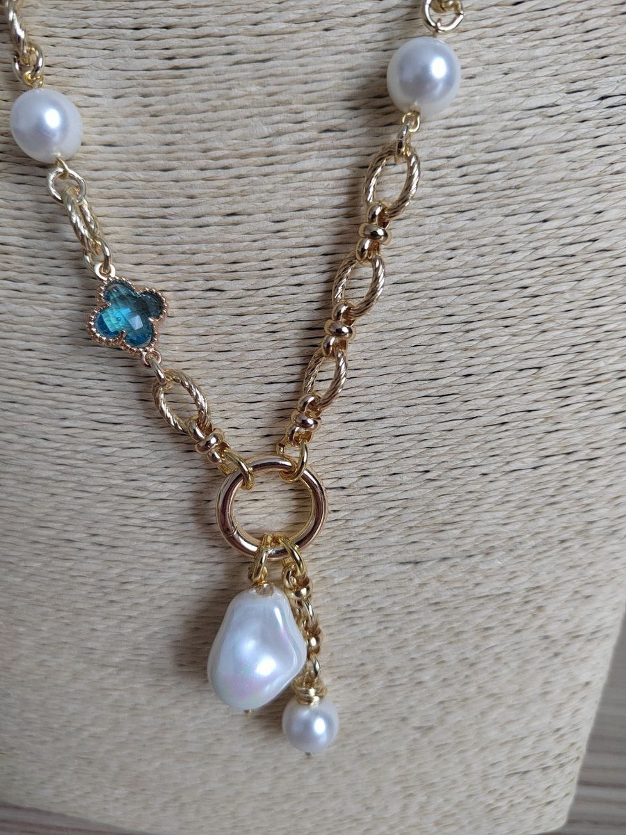 Колье с жемчугом Майорка. Длина 70см. Подвески барочный жемчуг и бусина Майорки.