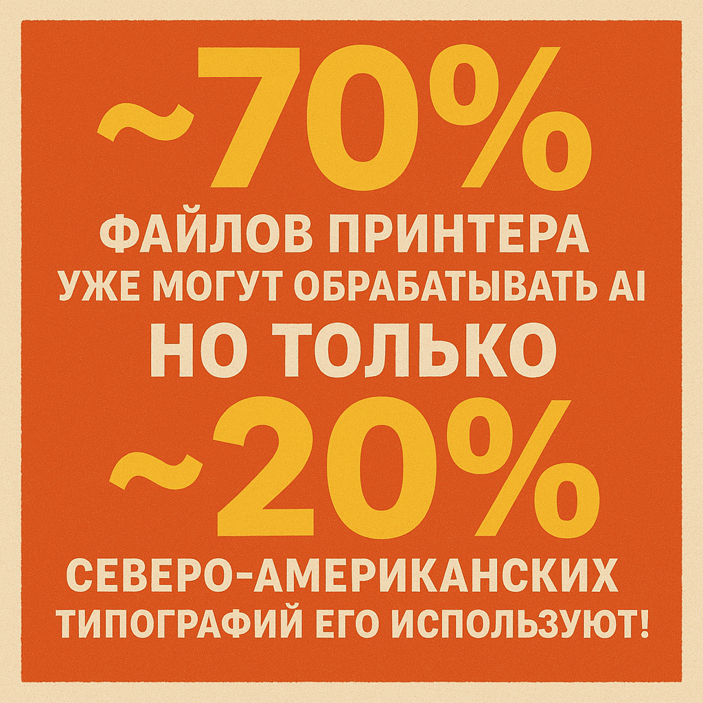Если кто не в курсе, но параллельно с нашей выставкой РЕКЛАМА-2025, проходила в Штатах локальная выставка Printing United рекламной индустрии в Орландо. В Америке это вообще самая крупная выставка про технологии печати и рекламы. На выставке было много премьер и новинок. Но я сейчас не про это. Так вот организаторы там организовали отдельный «Павильон ИИ», где выставлялись компании, проходили деловые программы на тему применения ИИ в индустрии печати. Там очень много «ГРОМКИХ» цитат и фраз было сказано. Одна меня самого зацепила. "~70% файлов печати уже могут обрабатываться при помощи ИИ, но только ~20% северо-американских типографий/печатных компаний его используют!" Я вам скажу так, что в РФ и того меньше. Понимаете, какой потенциал для роста? А про применение ИИ говорили заметные игроки производства мерча во время круглого стола 20 октября, видео есть у меня в телеге. Посмотрите и узнаете, как некоторые компании уже находятся в космосе или очень близко к нему. Первым делом размещаю