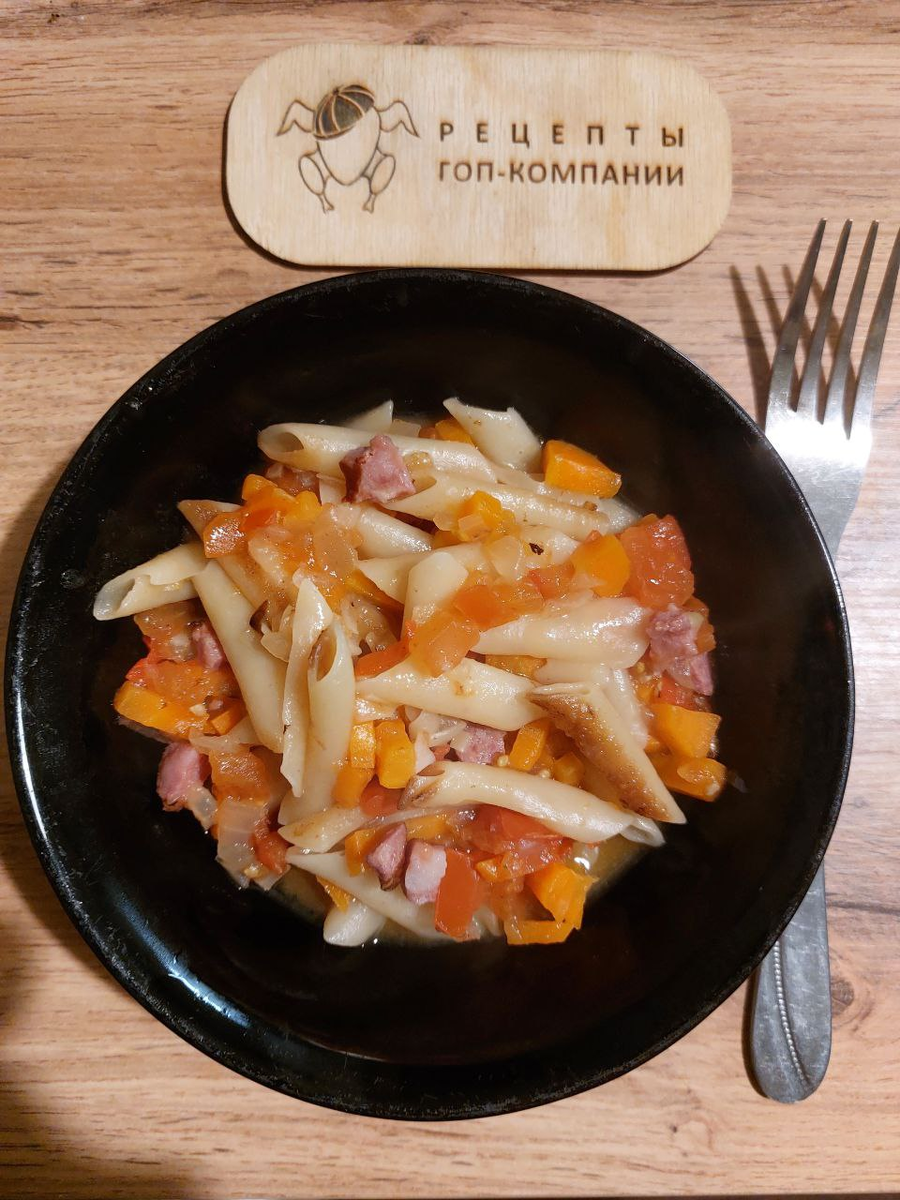 Блюдо из разряда быстро-вкусно-проверено. Закидываем на сковородку кусок сливочного масла. Туда же отправляем мелко порубленный лук, морковь и краковскую колбасу. Как только пойдет жара, насыпаем в сковороду макароны. Жарим до тех пор, пока у макарон не подрумянятся бока. Заливаем водой, лучше кипящей из чайника, так, чтобы каждая макаронина была в воде. Солим по вкусу и посыпаем сверху мелко нарезанными томатами. Время от времени помешиваем и пробуем макароны. Как только сварились, а бульон из сковородки практически пропал, объявляем блюдо готовым и наслаждаемся сытным перекусом, приготовленным на скорую руку. Приятного аппетита! Все кулинарные приключения собраны здесь: рецепты гоп-компании