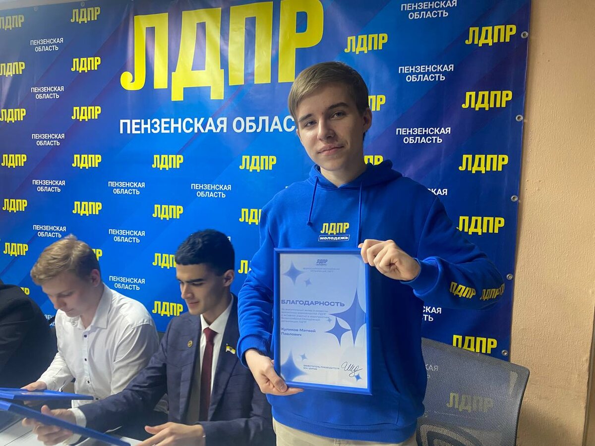 В Пензе активисты Молодежной организации ЛДПР были награждены благодарственными письмами