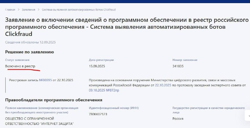Мы попали в реестр отечественного ПО Минцифры с проектом clickfraud.ru