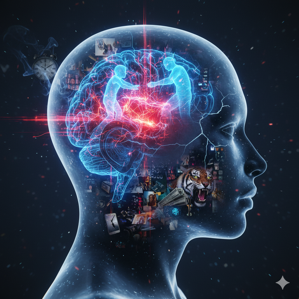 - Амигдала (миндалевидное тело): Этот древнейший участок мозга, отвечающий за страх и эмоции, буквально "перехватывает управление". Он реагирует молниеносно, гораздо быстрее, чем наша сознательная, рациональная часть (префронтальная кора). Именно поэтому мы сначала чувствуем панику или ярость, а лишь потом пытаемся понять, почему.