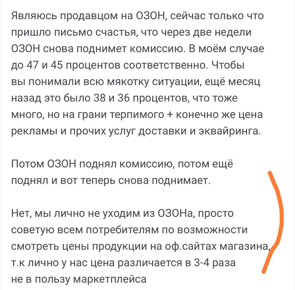 Читаю профильные чаты селлеров. И вот, утащил совет покупателям. Новость, кстати, свежая - опять комиссии подняли. Скоро снова вернутся сайты. Это и к лучшему. Хотя легкий возврат и получение у дома перекрывает возможную выгоду в 20-30% от цены на непонятном сайте с оплатой доставки стоянием в очередях и получением непонятно где, а так же почти 100% вероятности возникновения проблем при возврате… Русский ИТ бизнес