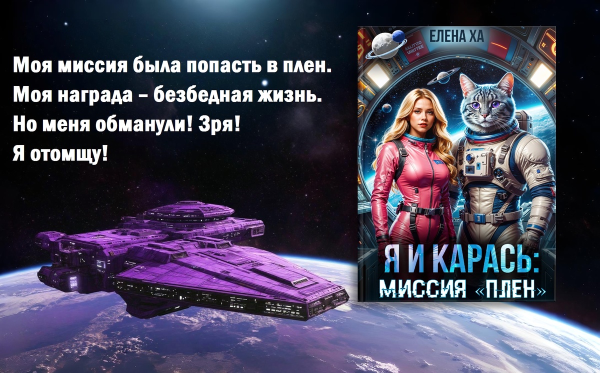 Добрый вечер, дорогие мои! Для читателей старше 16 лет... У меня вышла фантастическая новинка! Приглашаю вас в круиз по космическим достопримечательностям. Пристегните ремни, будет весело и динамично! Я и Карась. Миссия «Плен» Космическая, юмористическая фантастика Аннотация: Я была простой прачкой на планете Айоль и понятия не имела, что мы песчинки в бесконечной Вселенной, где уже много тысячелетий процветает Межгалактическая Федерация Наполь. Однажды в мою тяжелую, но мирную жизнь ворвался тайный страж Верховного Правителя Федерации... Так я оказалась в космосе, где на мой торговый лайнер напали пираты. Их главарь, получеловек-полукот с позывным Карась, захватил меня в плен. Наивный, он даже не догадывается, что это не я улов, а он! Отрывок: Я уставилась на незнакомца требовательно, уперев руки в бока и грозно сведя брови. Этот мелкий бесенок лишь хмыкнул и снова забурлил, будто великий вулкан-основатель Айоли: – Уоляляблюплюэош. Я начала злиться. Мне очень хотелось понять собеседн