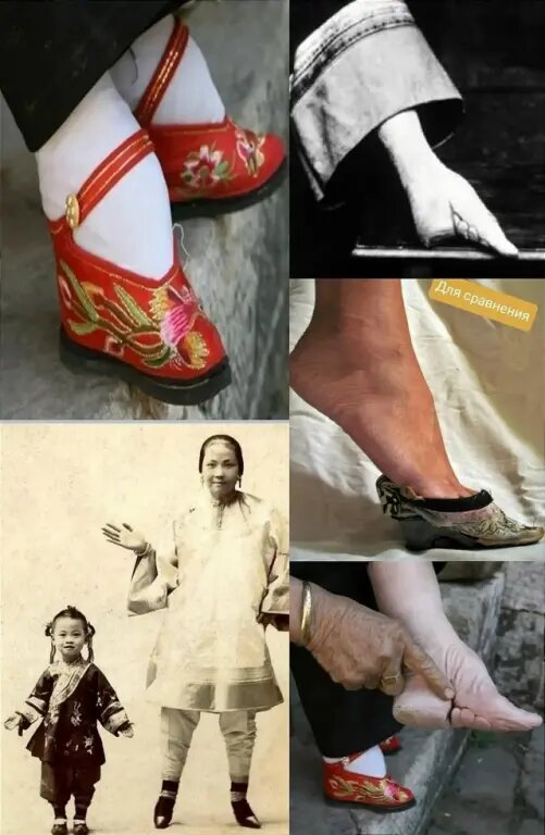Идеальная нога должна была не превышать 7 сантиметров в длину. Это был залог успешного замужества. Жених с родственниками во время смотрин обращали внимание в первую очередь на стопы, уже потом на внешность потенциальной невесты.