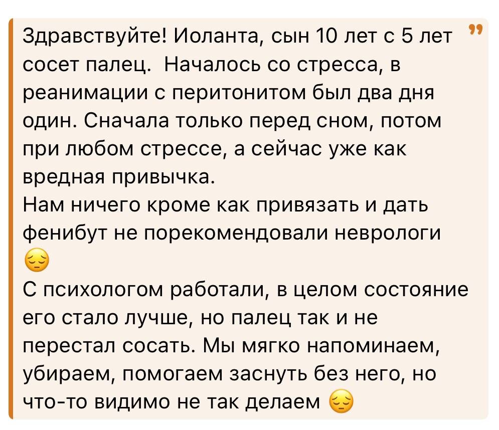 Ребенок 10 лет сосет палец. Вероятно мы имеем дело с навязчивыми действиями.