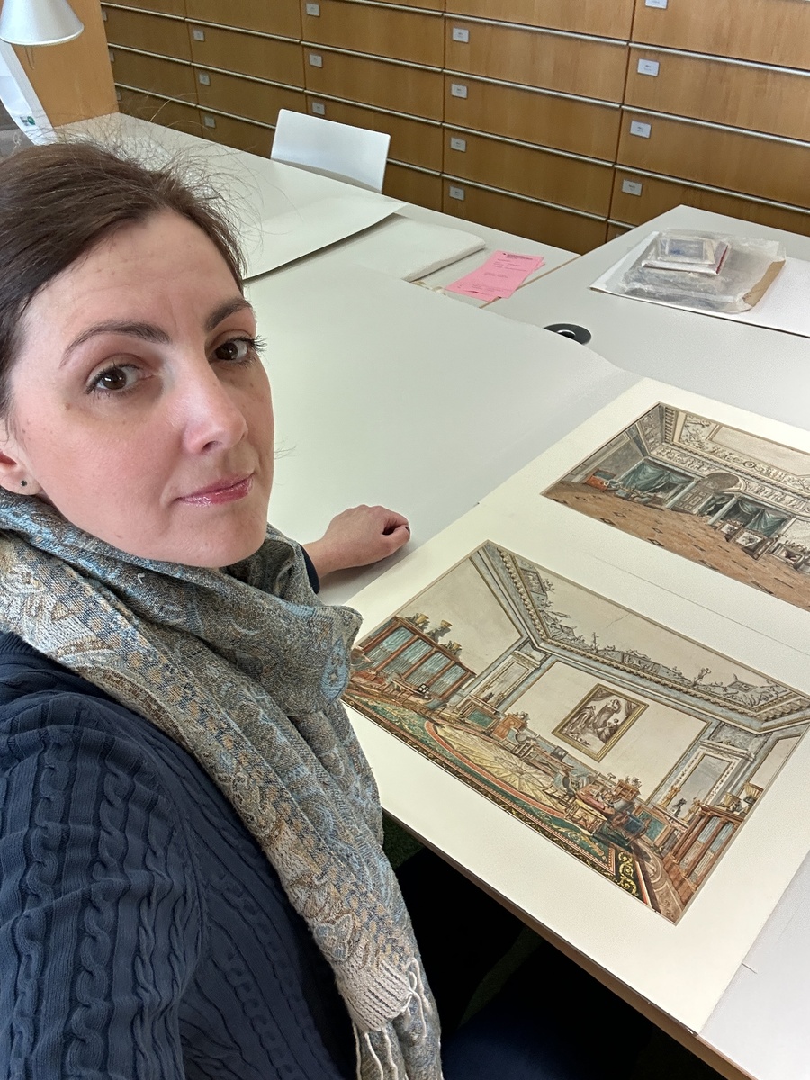 В 1837 году Зимний дворец полыхал невиданным огнем. Больше всего пострадали комнаты Елизаветы Алексеевны, супруги Александра I. От изумительных интерьеров остались только голые черные стены. Самой государыни уже 11 лет как не было на свете, и при ремонте ее покои решили не восстанавливать. Но сегодня они ожили на этих уникальных акварелях. Я совершенно случайно наткнулась на это сокровище, когда искала в Генеральном архиве Карлсруэ редкие портреты Елизаветы Алексеевны, в девичестве - немецкой принцессы Луизы Баденской. Автор акварелей - придворная дама Каролина София фон Фрейштедт, фрейлина Елизаветы Алексеевны и ее верная подруга с самого детства. Каролина тщательно зарисовала обстановку Опочивальни и Большого кабинета императрицы. После кончины государыни фрейлина вернулась домой, в Карлсруэ, и привезла акварели с собой. Картины выполнены с истинно немецкой точностью и педантичностью. Обращают на себя внимание нежные бирюзовые оттенки Опочивальни, уютная зона отдыха и изысканные подс