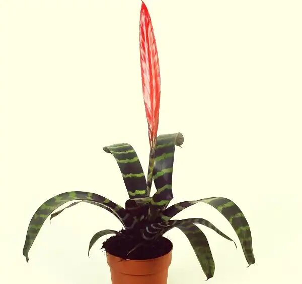 Во-первых, вриезия не требует частого полива. Во-вторых, она не боится сухого воздуха так сильно, как, например, орхидеи. В-третьих, ее не нужно пересаживать каждый год — корневая система у нее слабая, и горшок служит скорее для устойчивости, чем для питания.