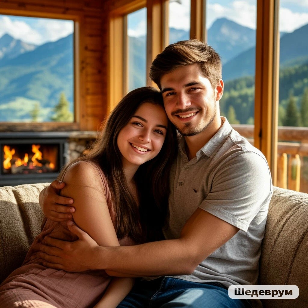 Они еще долго стояли там, любуясь пейзажем и просто наслаждаясь обществом друг друга. Казалось, время остановилось, и существовали только они двое в этом прекрасном горном мире... После прогулки они пошли в домик, чтобы немного отдохнуть.