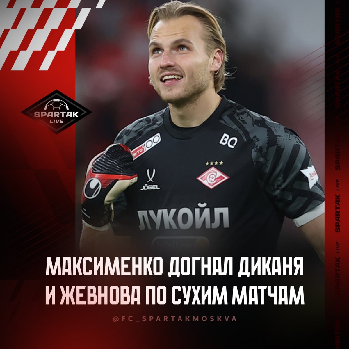 👏 Максименко догнал Диканя и Жевнова по сухим матчам за карьеру и Джикию по матчам за «Спартак» в РПЛ