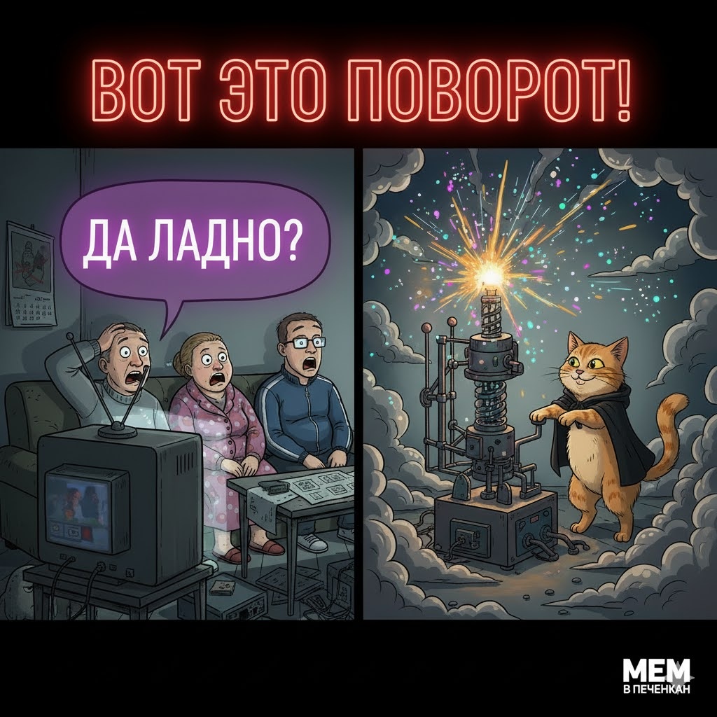 МЕМ В ПЕЧЁНКАХ. ВОТ ЭТО ПОВОРОТ!: Наша реакция на любую неожиданность Диагноз: СЮРПРИЗ! Привет всем, кто любит, когда жизнь подбрасывает неожиданные сюжеты! Сегодня наш мем-герой — это фраза, которая стала нашим коллективным криком шока, радости или ужаса — "ВОТ ЭТО ПОВОРОТ!" Этот мем — не про дорогу, это про неожиданный финал! Почему он так прочно засел в печёнках? Потому что он позволяет нам с юмором принять то, что реальность всегда оказывается страннее самых смелых фантазий. Готовы к неожиданностям? Погнали! Хроника Апокалипсиса Как "Поворот" стал нашей любимой фразой из кино Мем родился из бесконечного числа ситуаций, но чаще всего его связывают с сюжетными линиями в кино и сериалах, где в самом конце происходит нечто совершенно непредсказуемое. Ключевой момент — это контраст между ожидаемым финалом (Всё будет нормально) и абсолютным шоком (Да ладно?!). Мы используем этот мем, когда: * Случается что-то невероятное или нелогичное. * Разоблачается скрытый злодей или секрет. * В