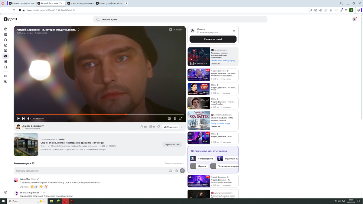 Державин очень известный певец, но при этом его почти нет в ротации мне кажется его должны крутить на всех каналах у него просто офигенные клипы и хиты каких мало у кого есть - это так - и без преувеличений - разве не очевидно да конечно ..
