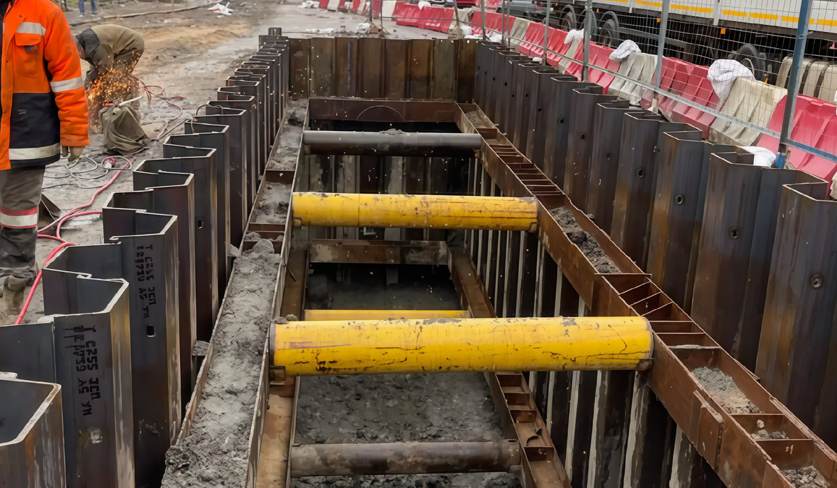 Проект отличается высокой сложностью из-за необходимости организации работ в стесненных условиях действующего производства и соблюдения строгих временных рамок. Использование метода вибропогружения шпунтовых свай не только ускоряет процесс монтажа, но и способствует минимизации воздействия на окружающую инфраструктуру, включая дороги, инженерные коммуникации и близлежащие строения.