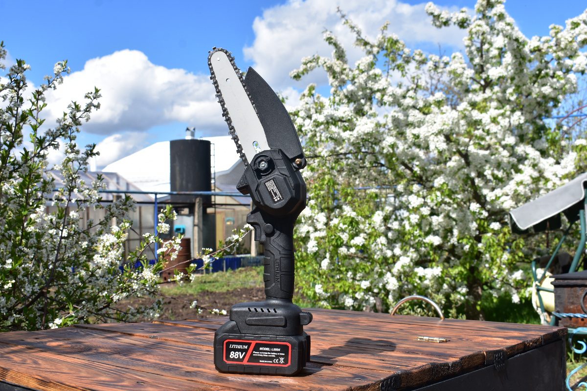 Всем привет, сегодня у нас на обзоре цепная аккумуляторная пила. Куплена на одной известной площадке за 1359 рублей. Производитель очень скромный и не дал название своему творению. Поставляется пила в кейсе из самого дешёвого пластика. В комплекте идёт : пила, шина, 2 аккумулятора, цепь, маленькая крестовая отвёртка, очки и пара перчаток. От пластика аккумуляторов, пилы и кейса исходит химозная вонь, запах напоминает тряпичные тапки из моего детства, в которых мы бегали по улицам. Запах кстати со временем сошёл на нет. Само качество пилы очень посредственное. Пластик весь в дефектах отливки, заусенцах, у половинок корпуса неравномерные зазоры. Меня распирало любопытство, что наши рисовые товарищи положили в аккумуляторы и я вскрыл один из них. Как оказалось панельки рассчитанные на 10 аккумуляторов имели только пять АКБ. Аккумуляторы оказались самые дешевые из возможных, с минимальной ёмкость в 1200 mAh. Перейдём к испытаниям, пилить будем полено диаметром 90 мм. На одном заряде аккуму