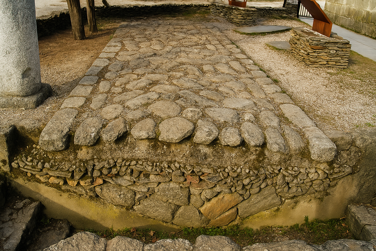 Первый слой – statumen. Основание из крупных камней, утрамбованных глубоко в грунт. Иногда на метр. Эти камни создавали дренаж: вода не застаивалась под дорогой, уходила в стороны. Никакого размытия основания.