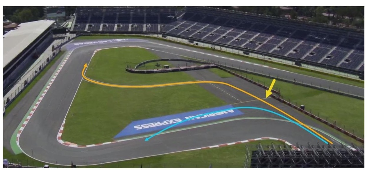 В этот уикенд любой гонщик, который промахивается мимо 4-го поворота, выезжает в зону безопасности и пересекает всеми 4 колесами сплошную желтую линию, нарисованную поперек (желтая стрелка на изображении), может вернуться на трассу только после 5-го поворота, используя асфальтированный маршрут для возвращения (выделен оранжевым на фото).