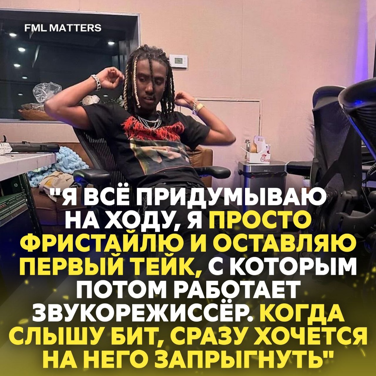 ❗️ OSAMASON НЕ ПИШЕТ ТЕКСТЫ ДЛЯ СВОИХ ТРЕКОВ! В интервью DAZED рэпер рассказал, что предпочитает импровизировать прямо в студии: он просто фристайлит на бит, оставляет первый дубль, а звукорежиссёр потом работает с записью. По его словам, последний раз он садился писать текст «много лет назад», ведь как только слышит бит, сразу хочется на него запрыгнуть. Хороший подход? ❤️🔥 / 👎 💀 FML MATTERS