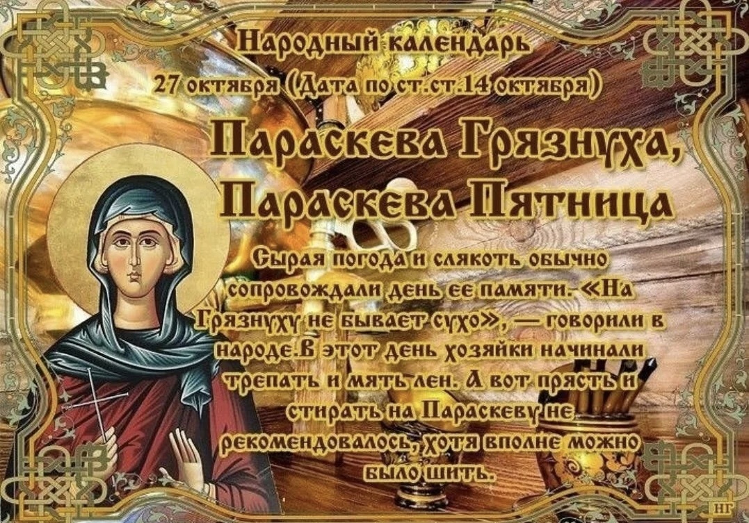 В понедельник 27 октября 2025 года в народно-христианском календаре отмечаются праздники: Параскева Пятница, Льняница, Грязниха.