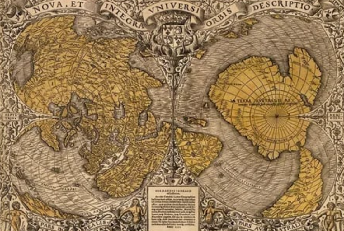 На карте, созданной О. Финеем в 1531 году, мы можем увидеть знакомую нам Тартарию, а также Северный и Южный полюса, которые изображены без ледяного покрова. Интересно, что на этих полюсах детально прорисованы рельефы берегов, гор и изгибы рек. Современные геологи утверждают, что процесс оледенения Антарктиды начался от 23 до 13 миллионов лет назад. При этом, рельеф береговых линий на этой старинной карте удивительно точен. Это вызывает сомнения: либо геологи вводят нас в заблуждение, либо средневековые картографы имели доступ к картам, возраст которых составляет миллионы лет.