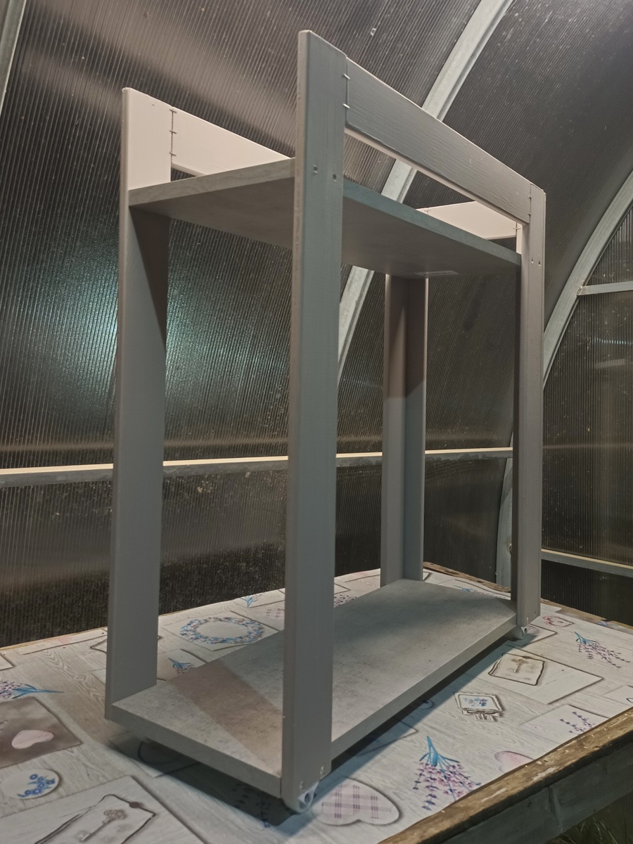 И завершил проект подставки для системного блока. Размещаться под столом будет. Выдвигаться вперёд может. На колёсиках. Вверху дополнительная полка для мелочей в контейнерах. Внутреннее пространство 20х60х48 см. Это заказ, на столицу уедет.